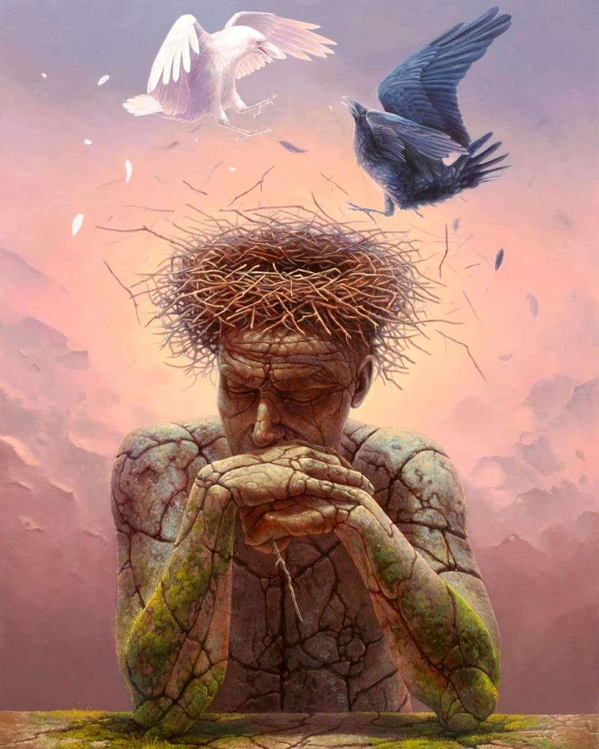 What if every things in our earth has a life , whats if stones , nature , water and fire has a body has feelings ( sad , happy , love , lost , etc ) . His paintings are imbued with symbols, tomasz could feel them, he could imagine and feel thier unseen beauty and describe it with his brush.
